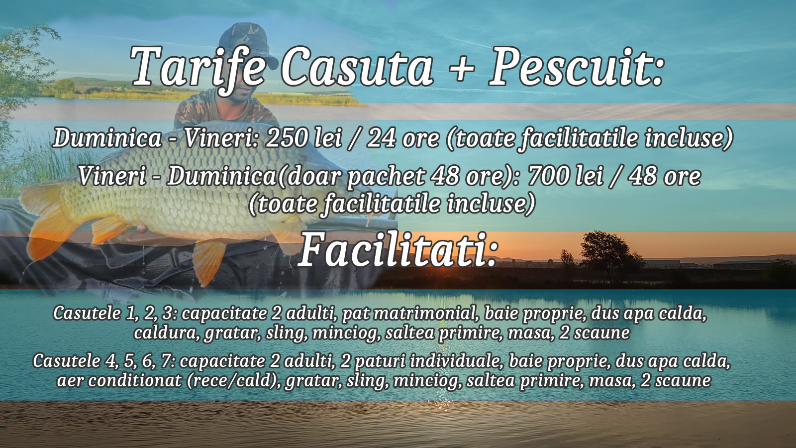 Ca si noutate in Romania, pescarii pot inchiria echipament pentru pescuit la crap sau feeder. Inchirierea se realizeaza fie selectand din lista echipamentul in momentul efectuarii rezervarii directe pe site a casutei, fie direct pe lac in momentul sosirii.
