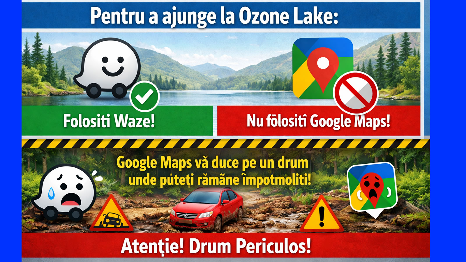 Vă rugăm să folosiți aplicația Waze pentru a ajunge la Ozone Lake.